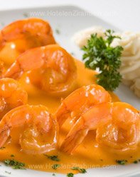 - Medallón de filete de res en salsa de colas de langostino