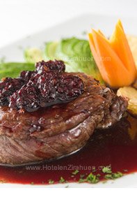 - Corazón de filete de res en salsa de alcachofas, y jitomates secos al sol