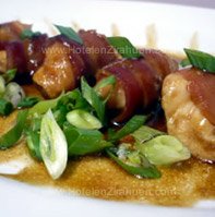 - Manzana rellena de camarón en salsa de manzana y chocolate blanco.